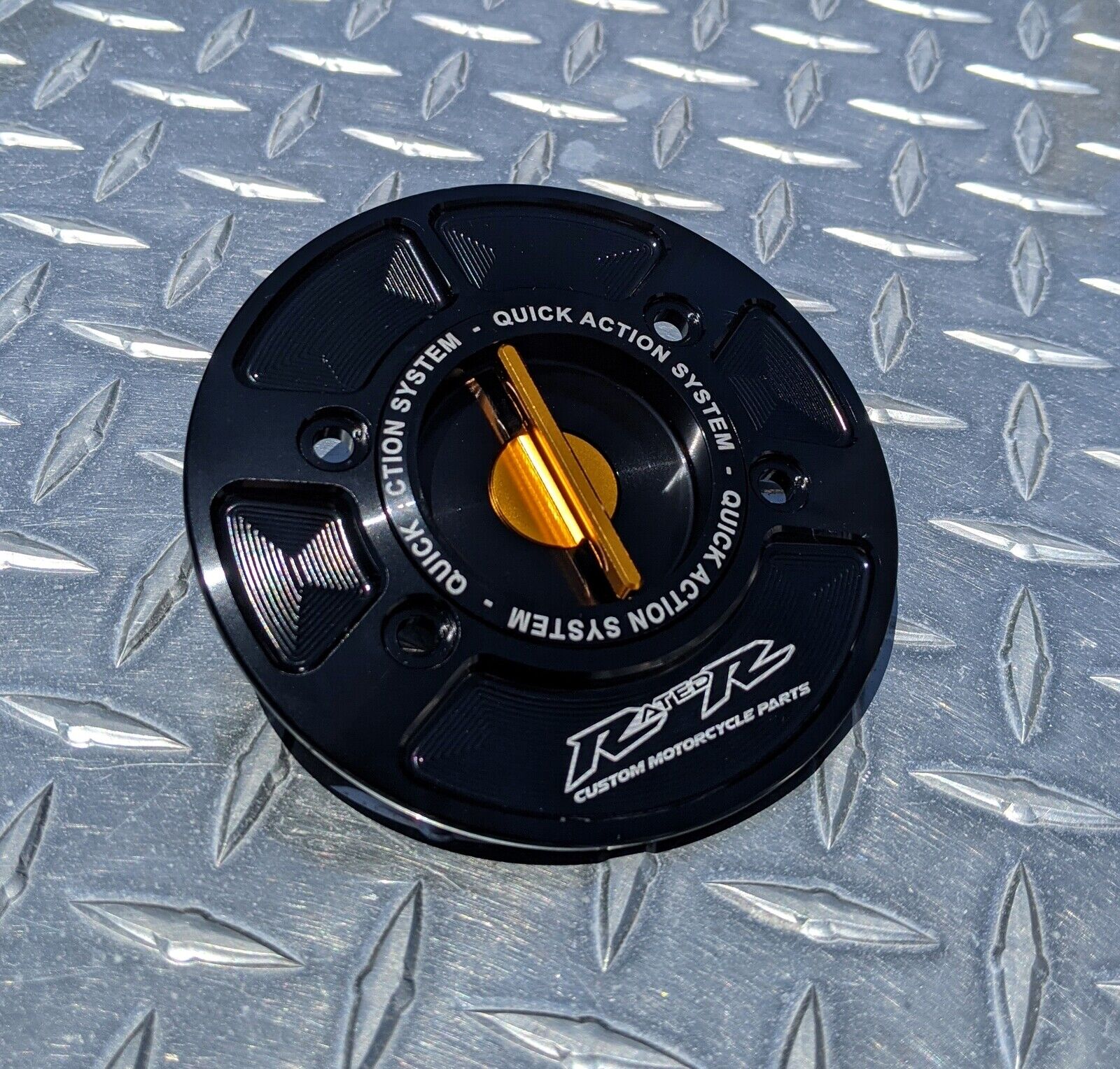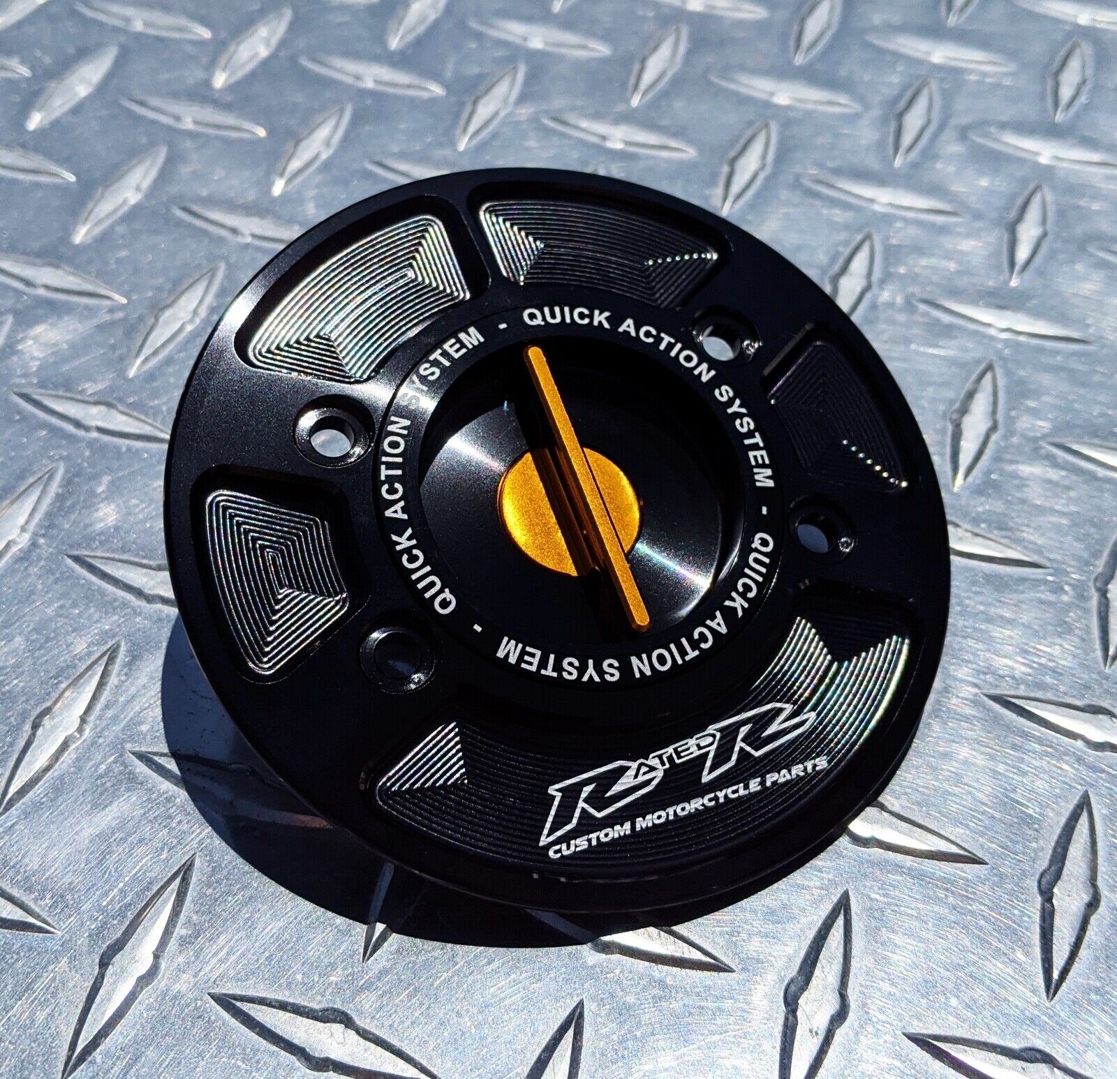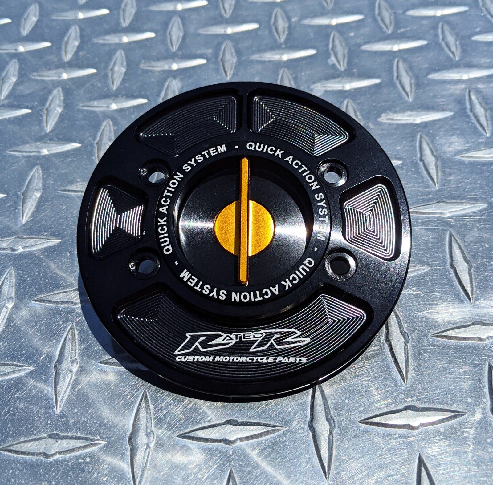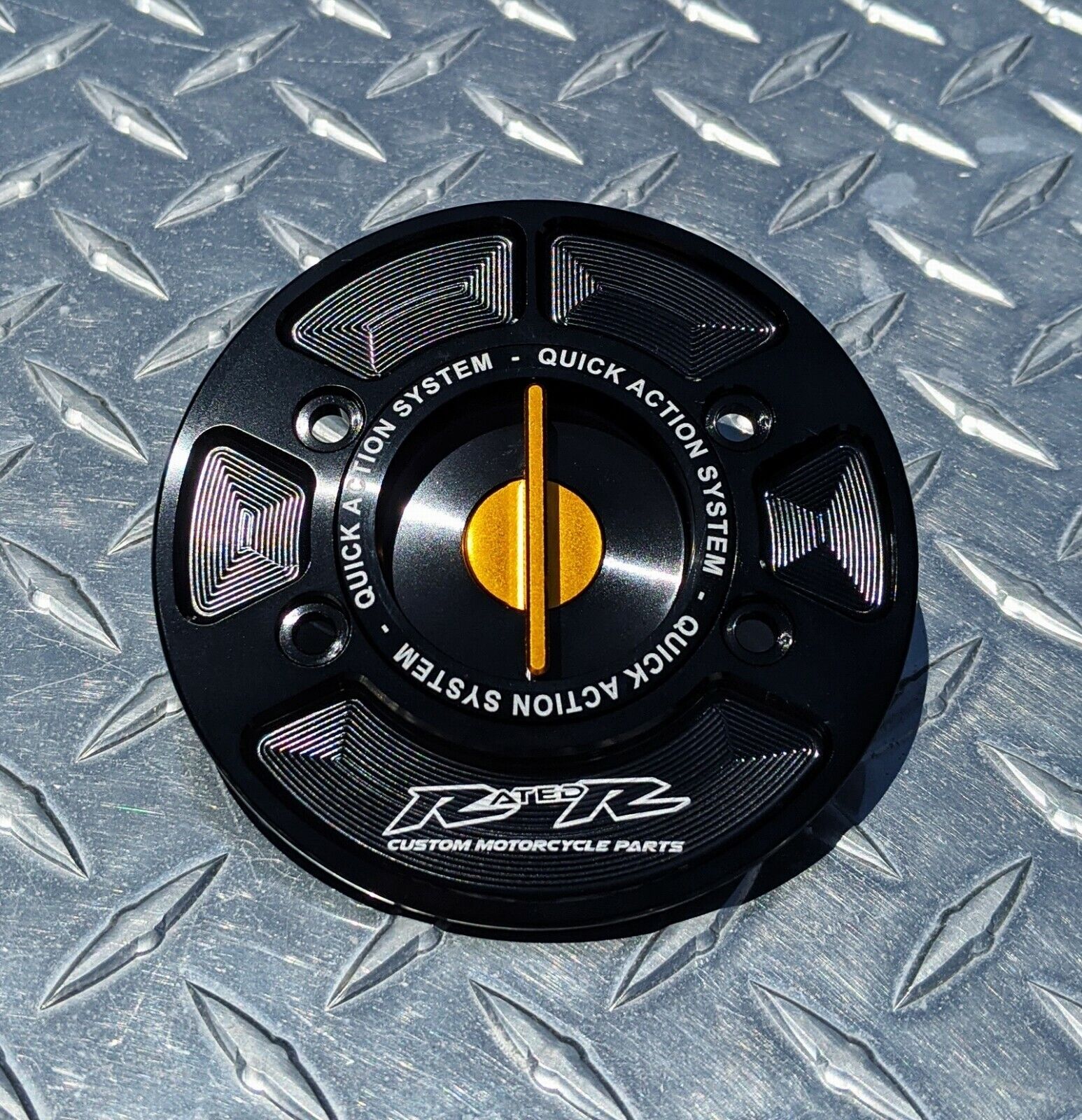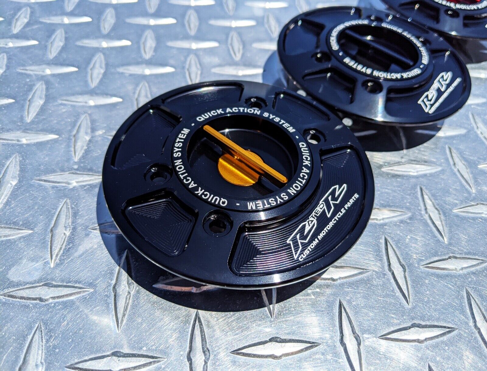 RatedR quick release caps use a keyless spring-loaded system