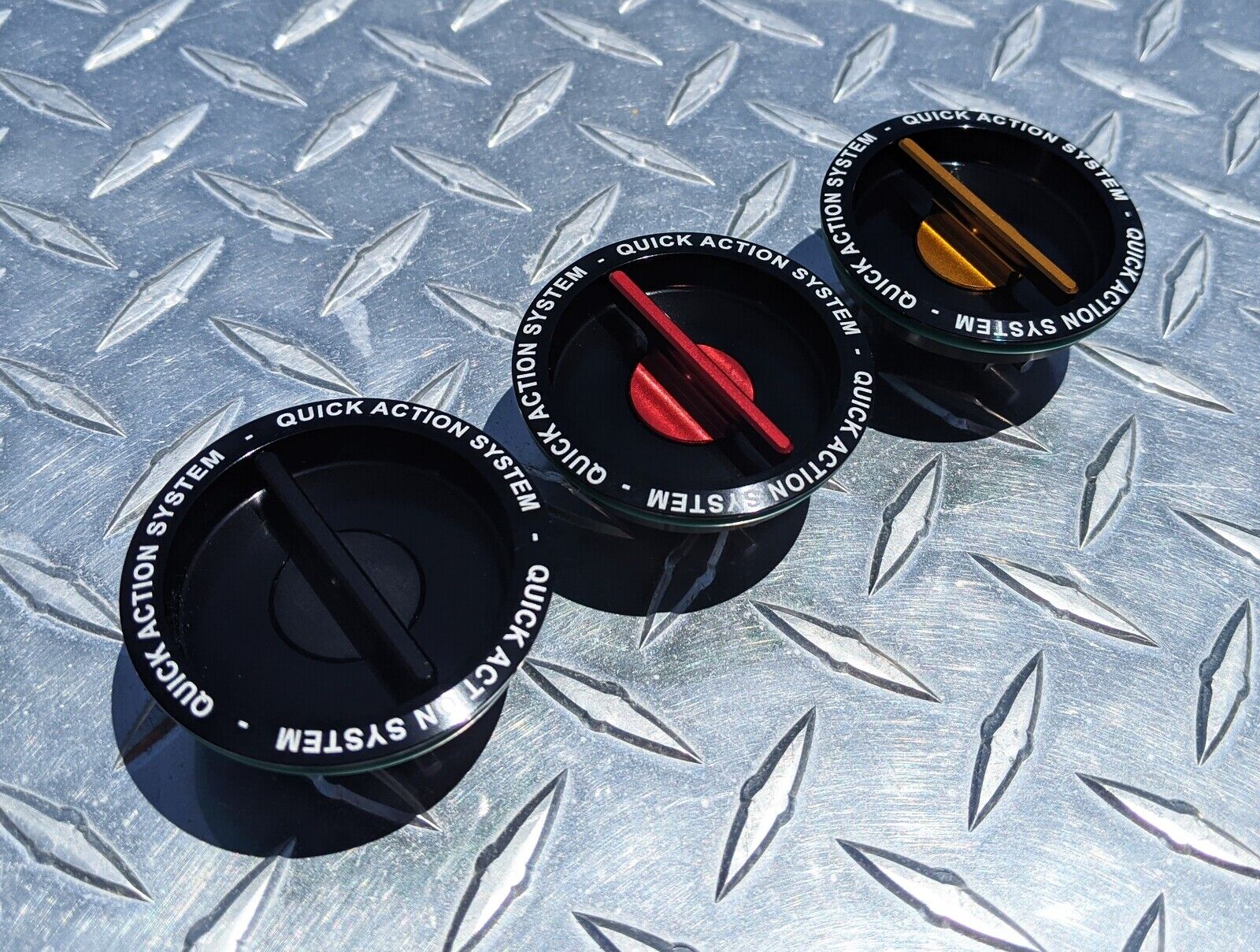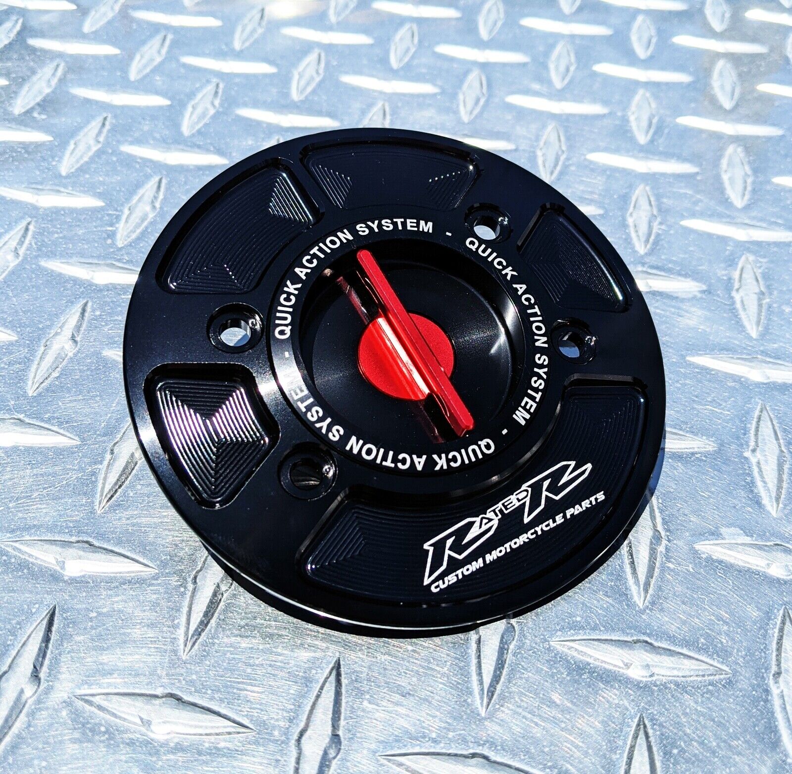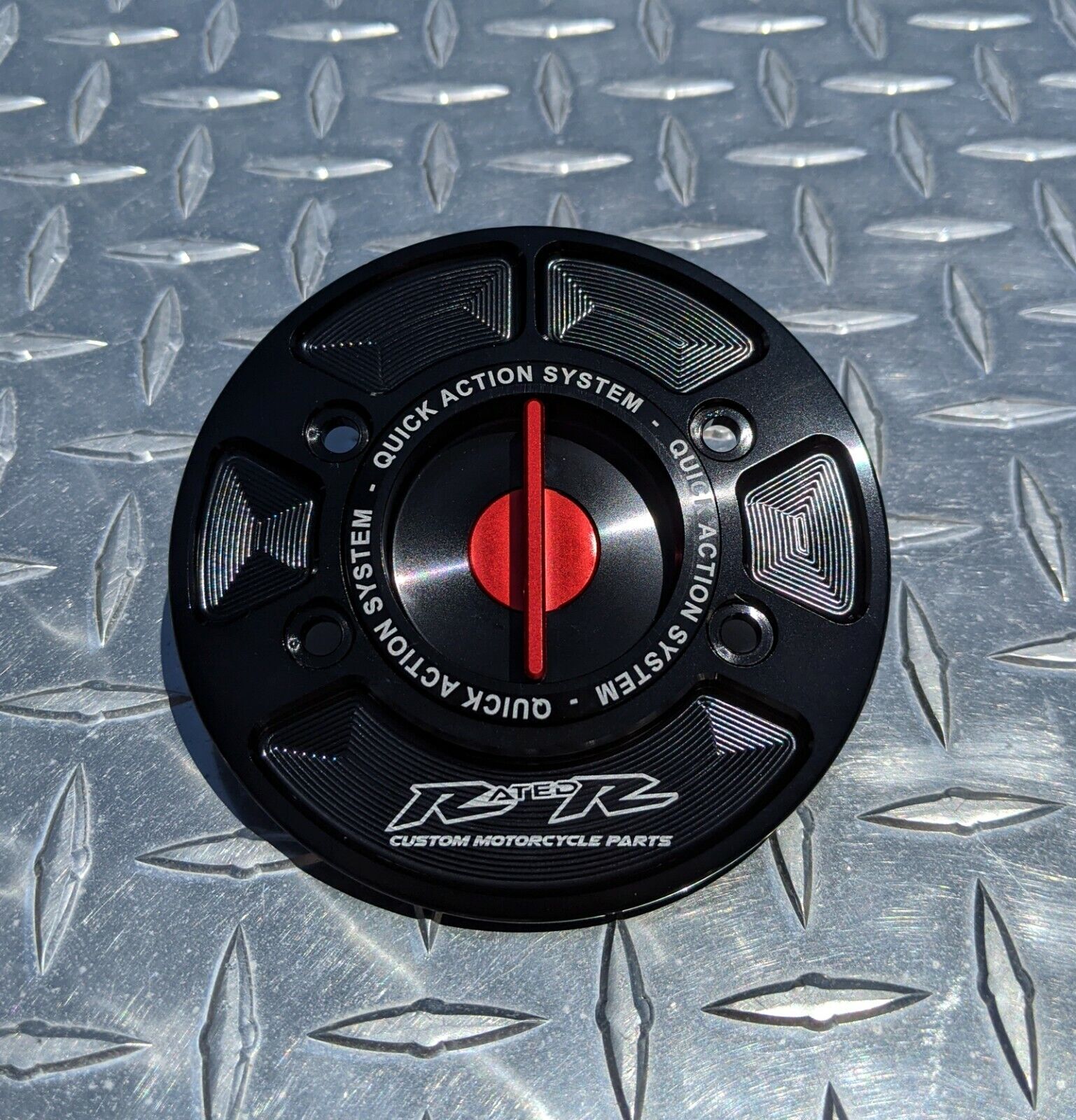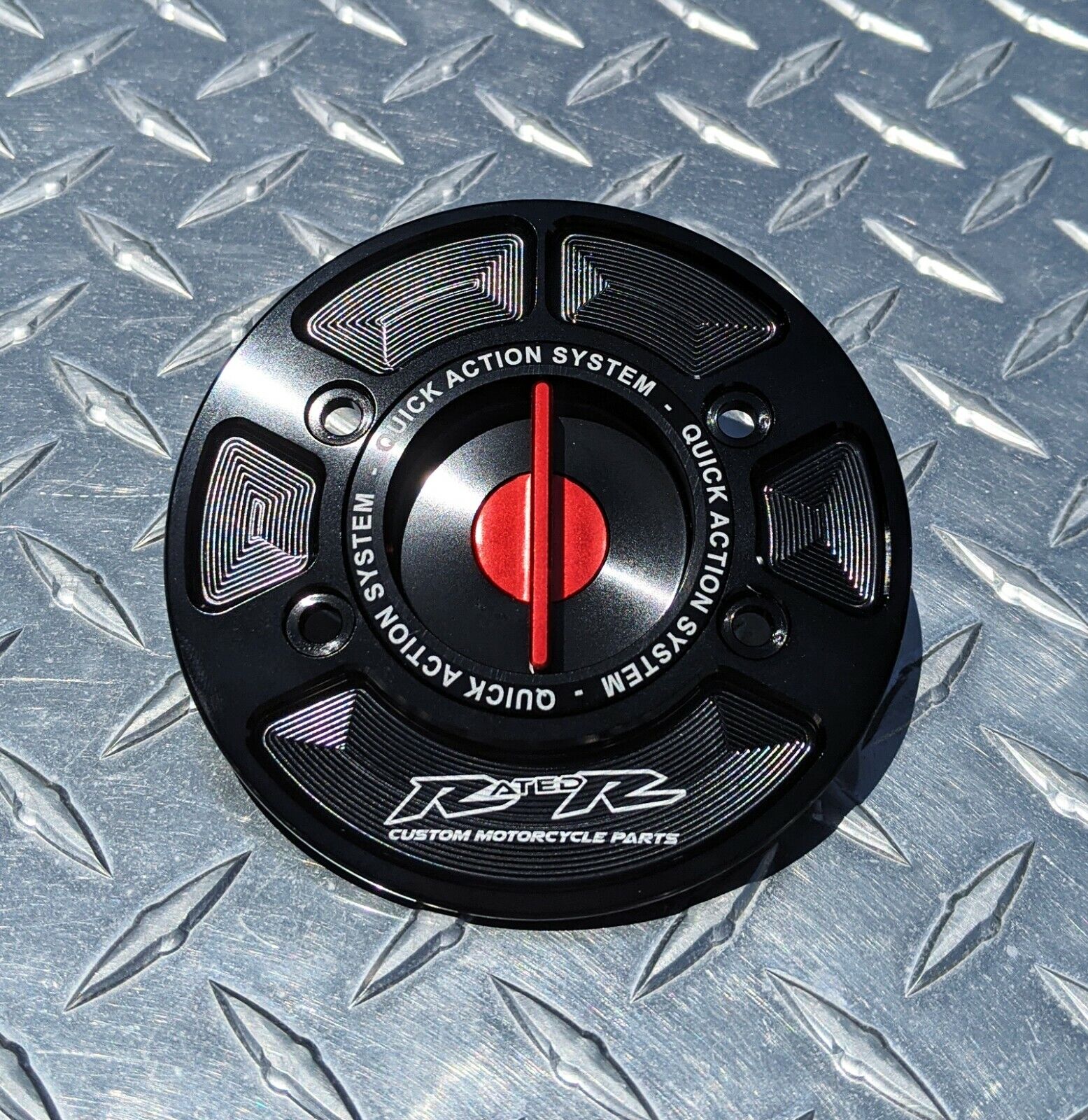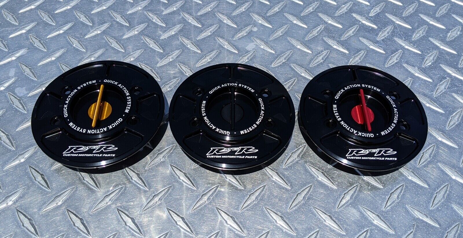 RatedR quick release caps use a keyless spring-loaded system