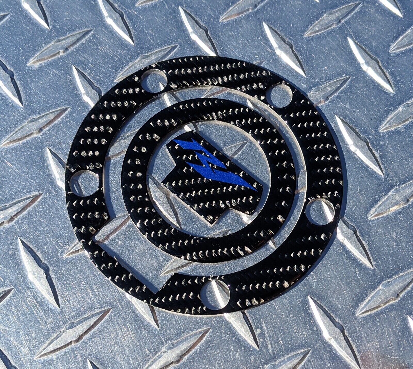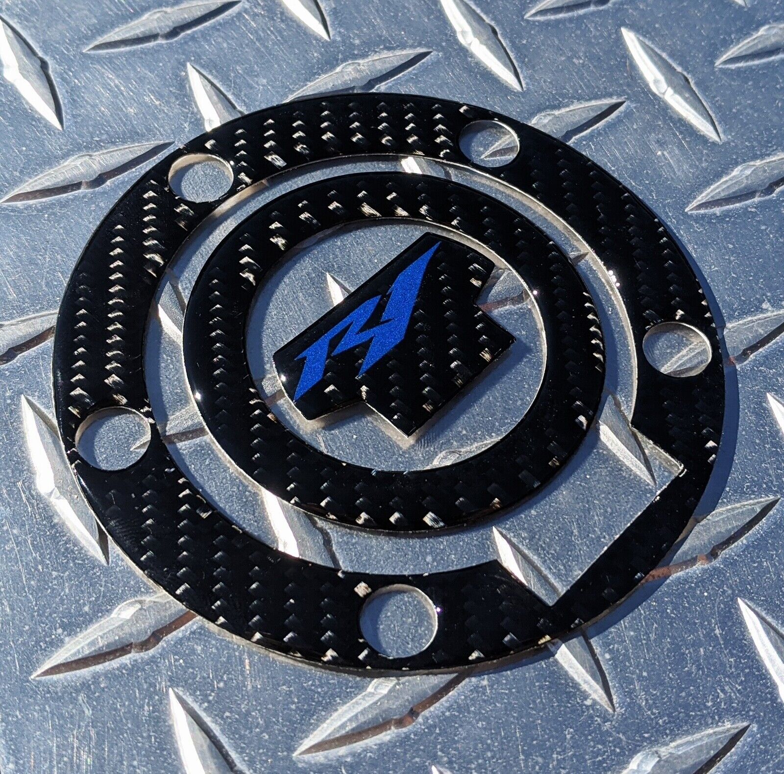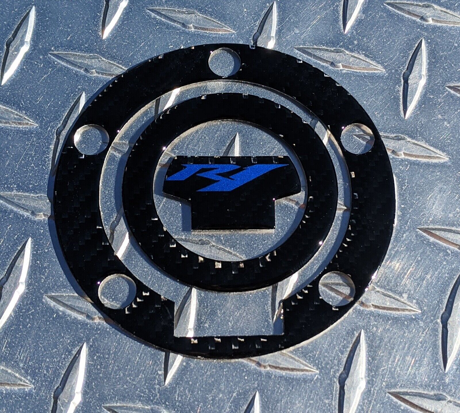 REAL Carbon Fibre Yamaha R1 Fuel / Gas Cap Cover Tank Pad R1S R1M Blue Logo