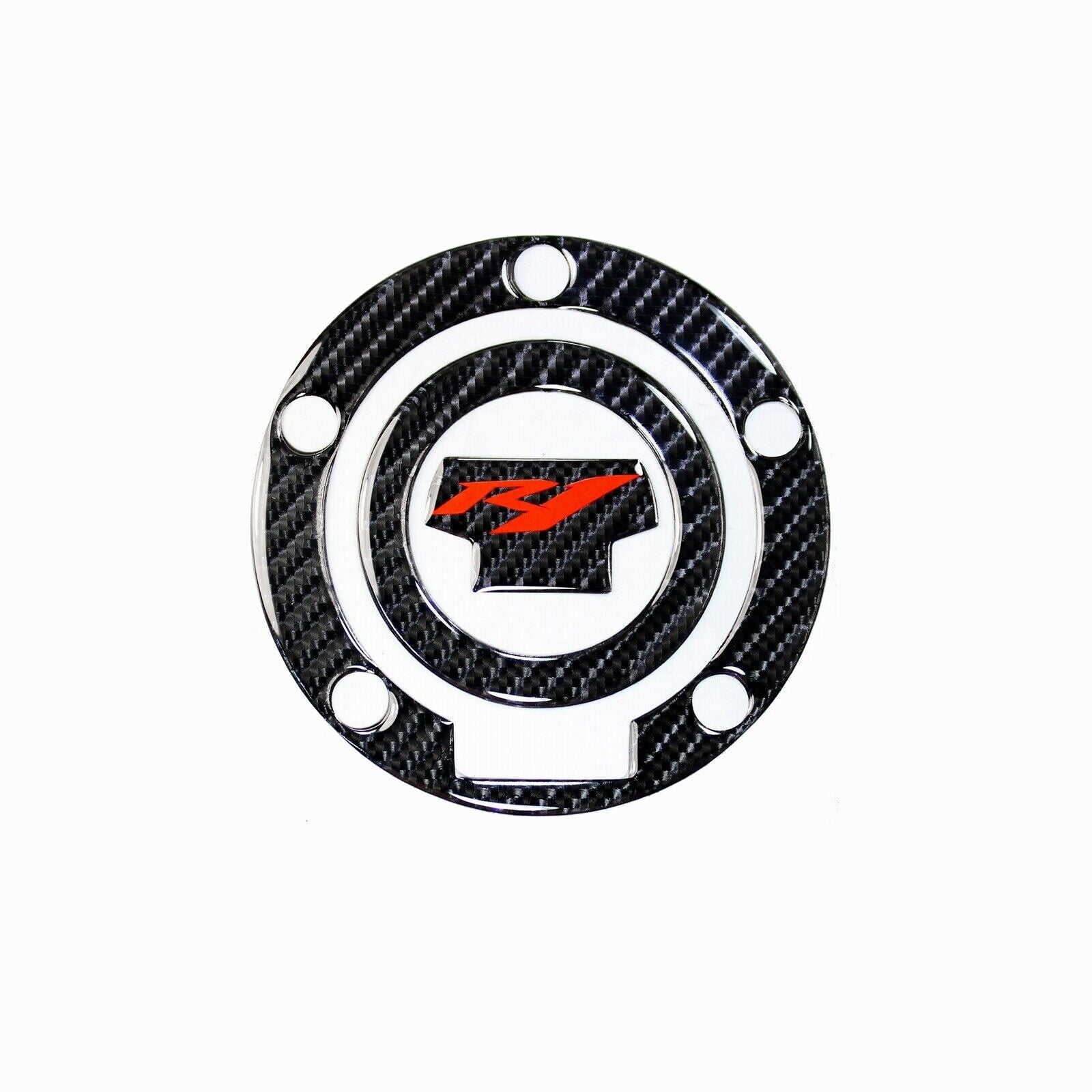 REAL Carbon Fibre Yamaha R1 Fuel / Gas Cap Cover Tank Pad R1S R1M Red Logo